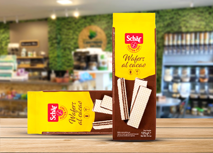 Biscoito tipo wafer com recheio. Sem glúten • Sem adição de ovos